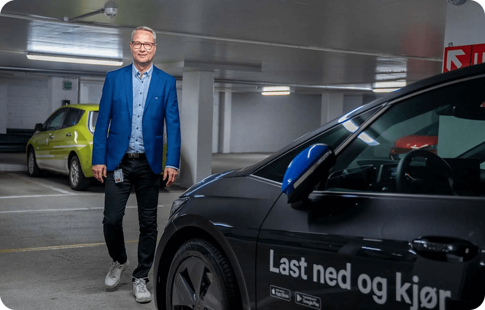 "De foreløpige tallene viser at vi kutter grunnkostnader med 40 prosent per måned sammenlignet med å bruke leasingbiler. Dessuten slipper vi å bruke tid på service, dekkskift og den type ting."
