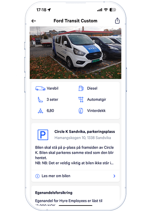 Med Hyre kan du raskt og enkelt leie bil i en time eller flere døgn. I prisen er forsikring og 150 kilometer alltid inkludert. Bom, drivstoff og overkjørte kilometer kommer i tilegg.